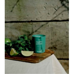 Cire naturelle à base de soja, mèche en pur coton tressé, huiles essentielles et absolues de grande qualité.